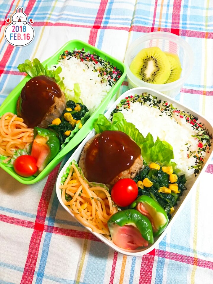 ハンバーグのお弁当*最近の子供たちももいろダイアリー♪。