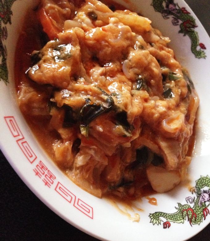 揚げ里芋のあんかけ*キムチ鍋の残りでキムチ茶碗蒸し**おうちでゆったり*。