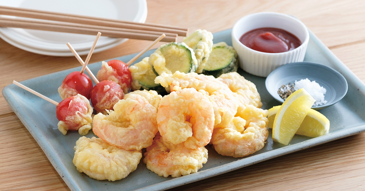 料理研究家さとみわさん監修 卵なしで簡単!エビのフリッター - 株式会社 波里Namisato米粉・もち粉・上新粉・胡麻・きな粉の製造販売FOOD ACTION NIPPON 推進パートナ。