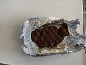 魚焼きグリルで牛ステーキ焼くととっても美味しいグニグニっとしてポイ。