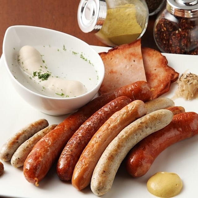 シュパルターの「バイエルンクラシックプレート」 2,000円 は、白ソーセージのヴァイスブルストほか4種のソーセージが楽しめる=大宮でビアフェスタ -大宮経済新聞。