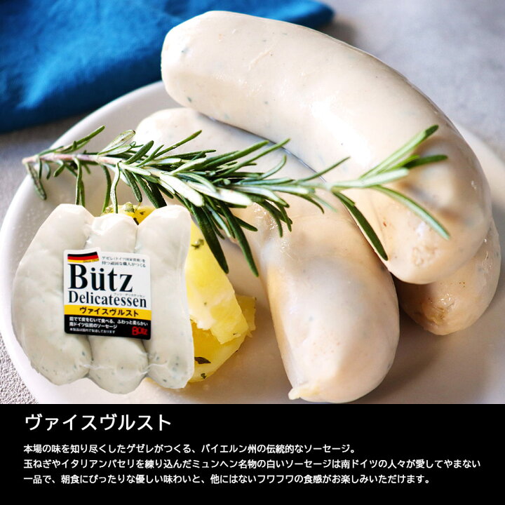 楽天市場 \10日限定P5倍! ヴァイスヴルスト 3本入り 210gブッツ 白ソーセージ ふわふわ ドイツ ミュンヘン ソーセージ ウィンナー宅飲み オードブル 惣菜 ポトフ 朝食 ビール おつまみ 人気 お取り寄せ おすすめ ゲゼレ ザワークラウト 田園調布 700円: ブッツ。