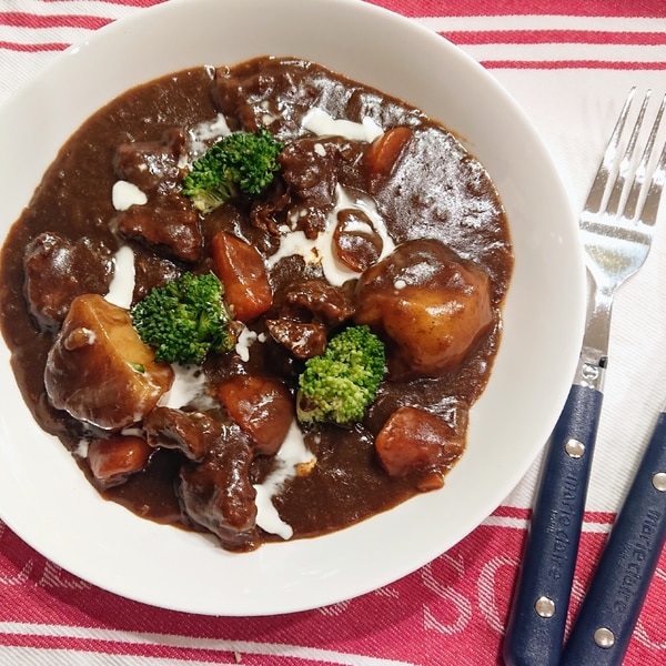 ちょっとしたひと手間で 市販のルーなのにお店の味に♪ワンランク上のおいしいビーフシチュ。