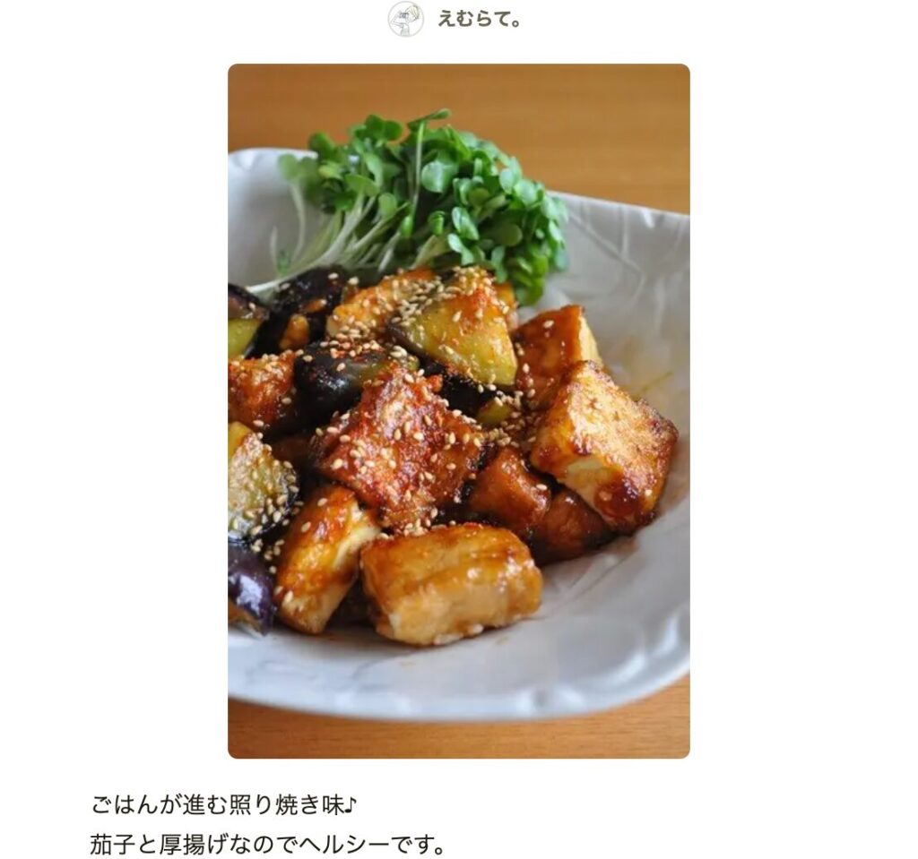 殿堂入り クックパッドで人気!ご飯が進みまくる「なすと厚揚げの照り焼き」クックパッドニュース。