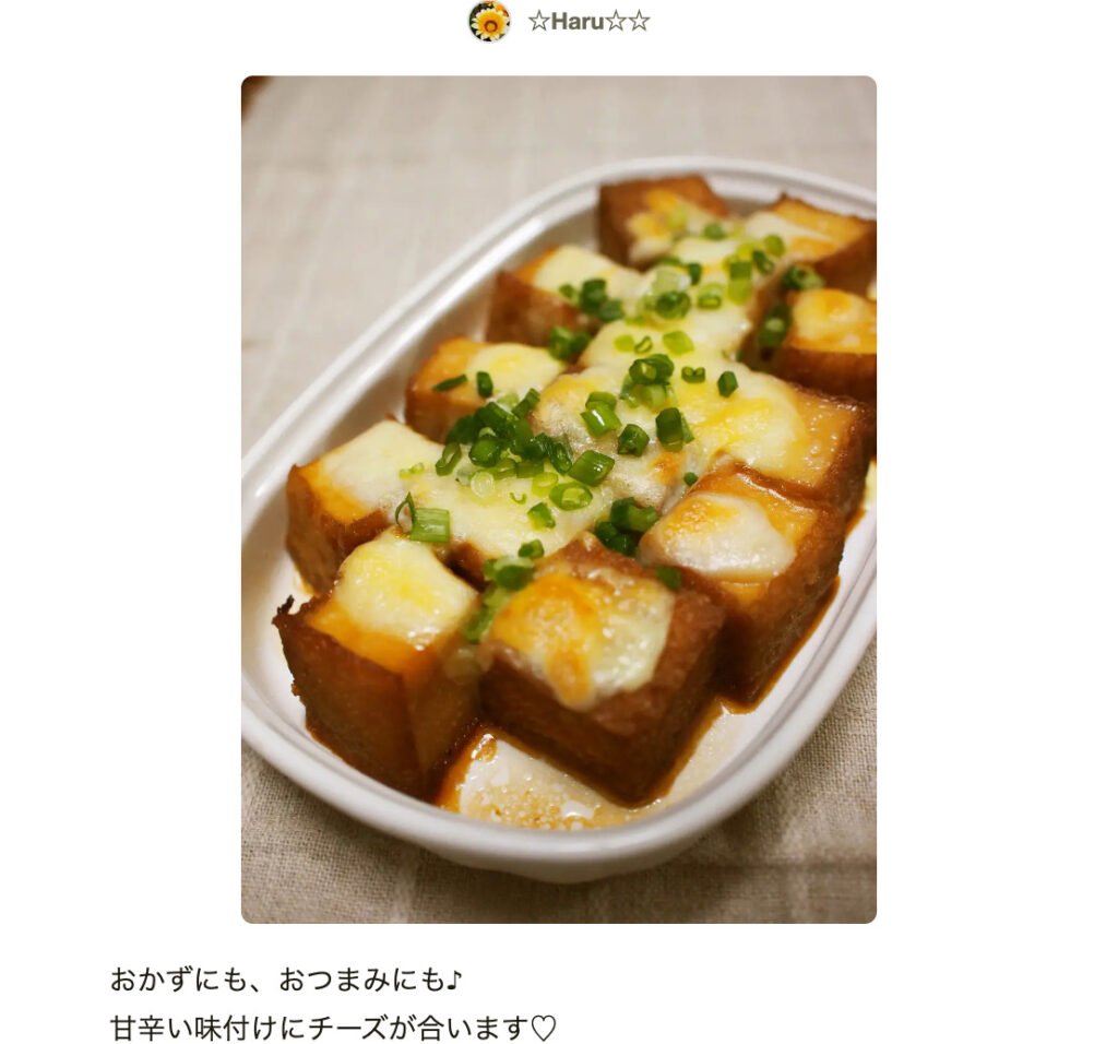 毎日使えるレシピ 毎日でも飽きない☆殿堂入りも☆つくれぽ1000超えだけ!厚揚げを使ったレシピ・作り方20選 常時更新 │くくれぽ。