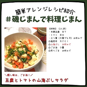 磯じまん公式アカウント🙏アカウント休止中🙏・山海ぶしレシピ紹介山海ぶし →紀州南高梅干しのペーストに、もみ紫蘇とかつお節を和えた練り梅です。梅嫌いのお子様にもおススメです♪・ ・ こんにちは!!! 磯じまん公式アカウントです! ・ 本日は サラダ。
