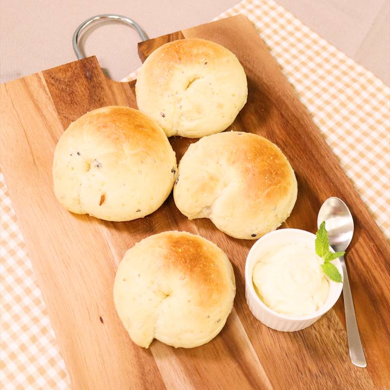 はちみつ&クリームチーズのディップで食べる雑穀ベーグル。