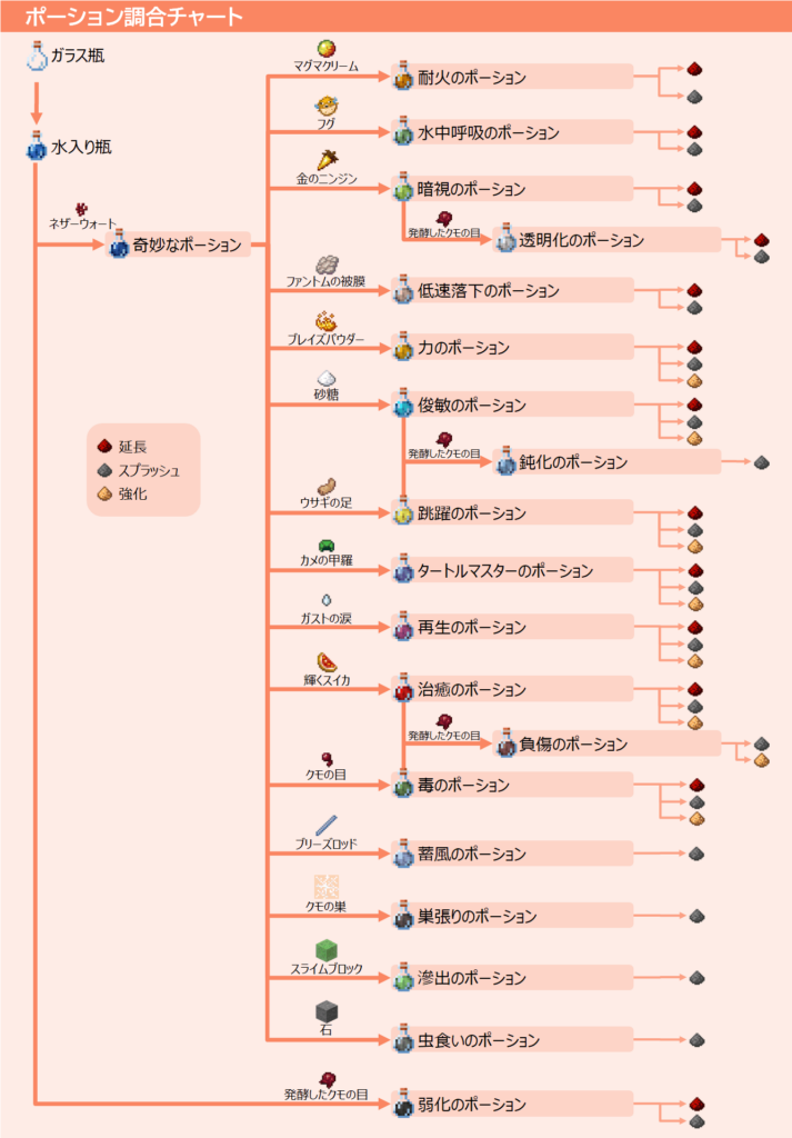 マイクラ ポーション一覧と作り方!全21種のチャートと効果を解説! 統合版 Java版マイクラ攻略まとめ。