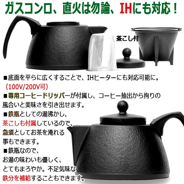値下げ 鋳鉄製コーヒードリッパー 岩鋳南部鉄器IH対応コーヒードリッパー付鉄瓶兼用。