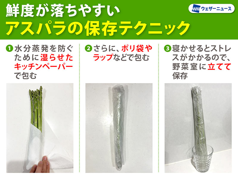 アスパラは常温保存NG? 鮮度を保つ保存方法とは - ウェザーニュース。