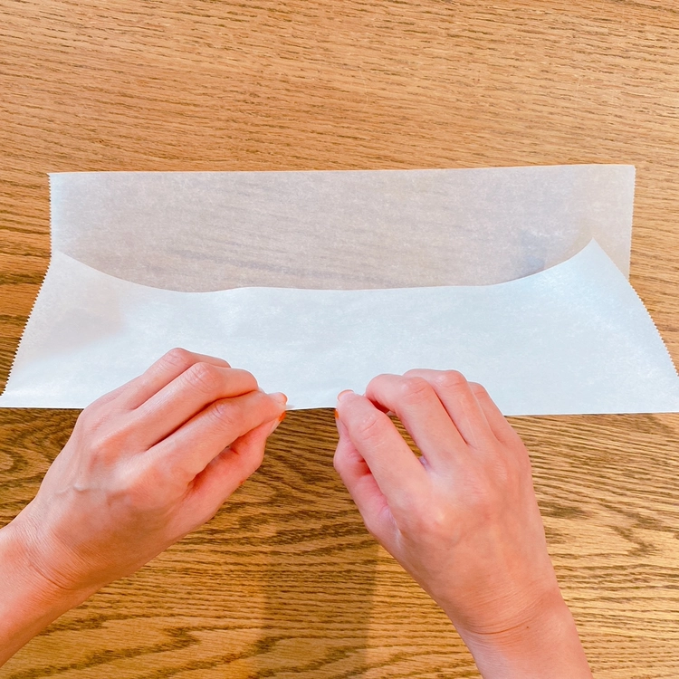 メスティン折り 作り方用意するもの幅30cmのクッキングシート工程① クッキングシートを180×300mmにカットする ②赤線に沿って折る ③ 青線に沿って折る ④ ②で折った場所を開き ひっくり返す ⑤ 四つ角を緑線に沿っておる ⑥ 一度すべての折り目を開く ⑦。