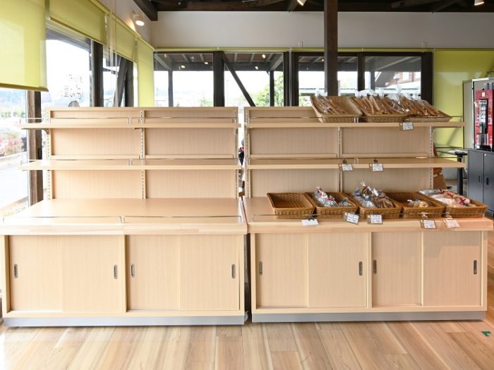 楽天市場 木製陳列棚 BAK-183P ベーカリー陳列棚 バックオープンタイプ 引き違い収納 キャスター付き 高さ調節可能 ワイヤー手すり付き店舗什器 店舗用品 キャビネット ラック シェルフ ベーカリーショップ 飲食店 カフェ 道の駅 直売所 サービスエリア : オフィス家具。