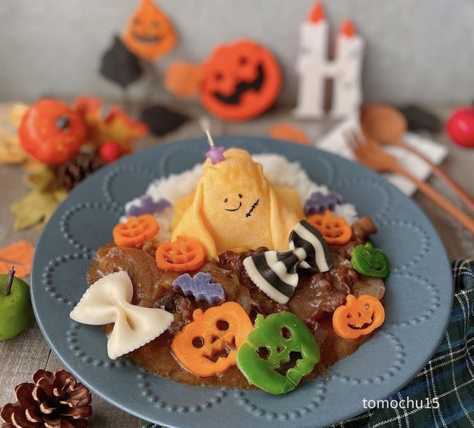 ハロウィンデコカレー おばけのハロウィーンパーティー風。