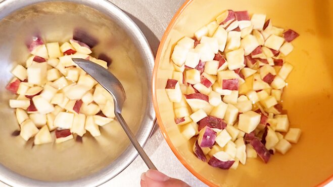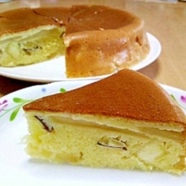 さつまいもとりんごの炊飯器ケーキ ホットケーキミックスで簡単!型がなくても作れる。