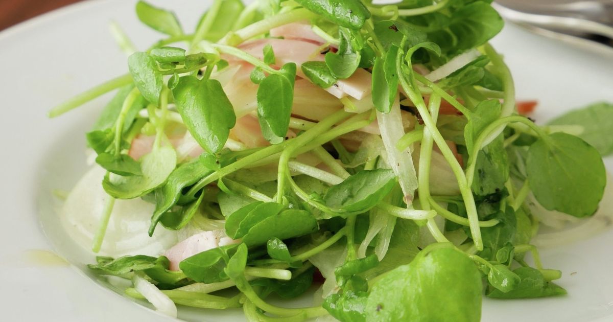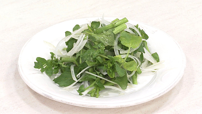 クレソンのサラダの作り方を紹介!ドレッシングも手作りで食・料理オリーブオイルをひとまわし。