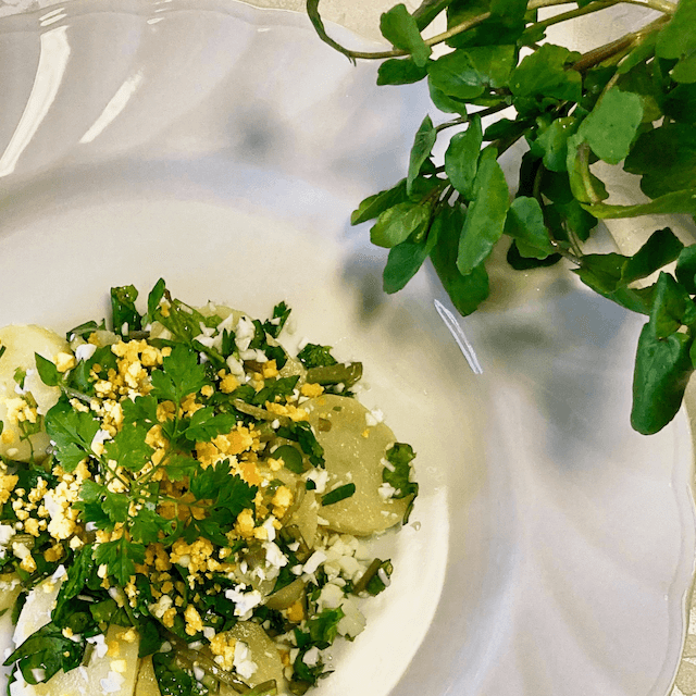 風立ちぬ エスコフィエによる料理の手引きクレソンとポテトのサラダ。