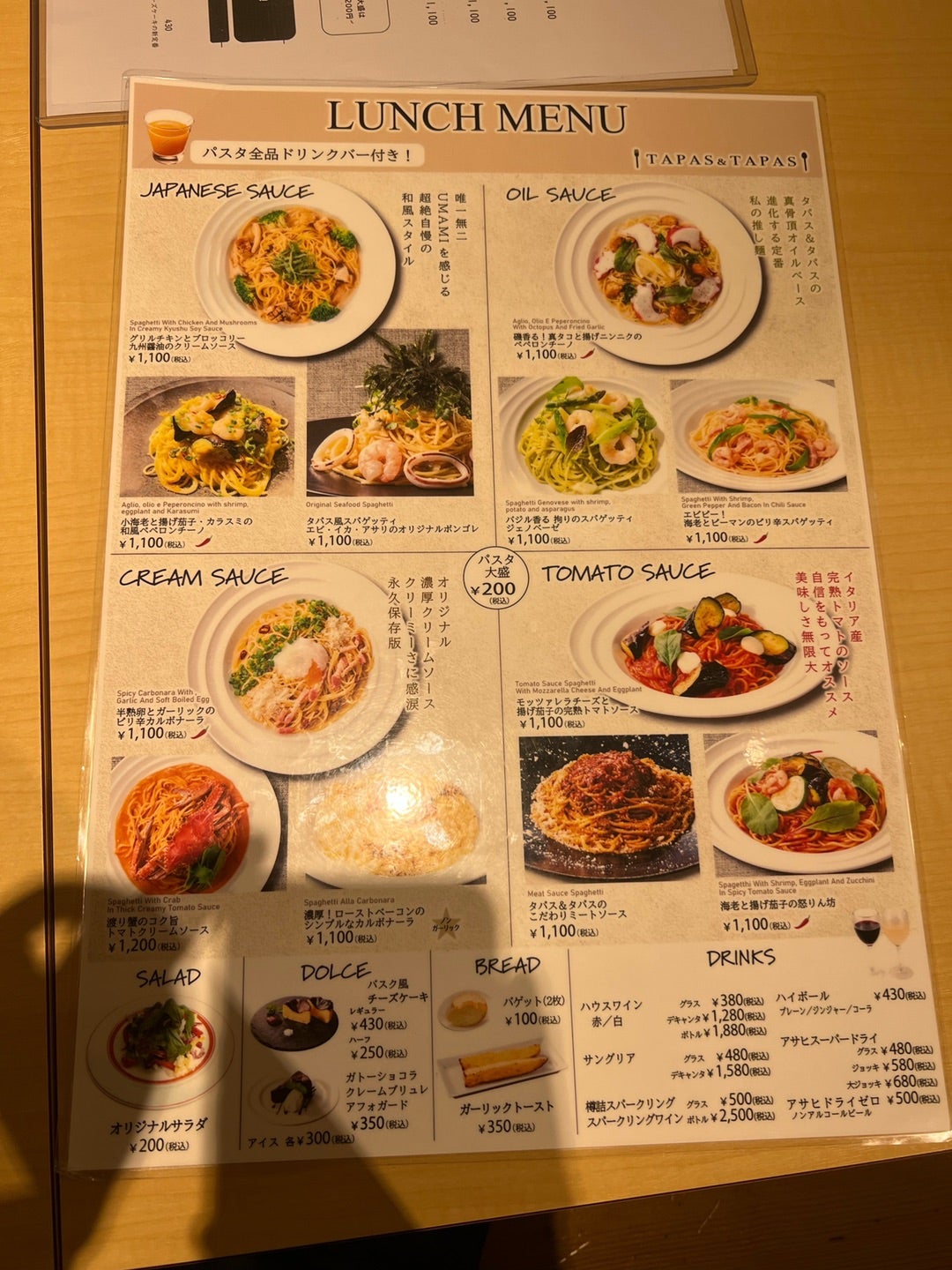 タパス&タパス 吉祥寺店」でドリンクバー、サラダ、デザートをセットで付けられるパスタランチ閉店吉祥寺ブログ「きちログ」。
