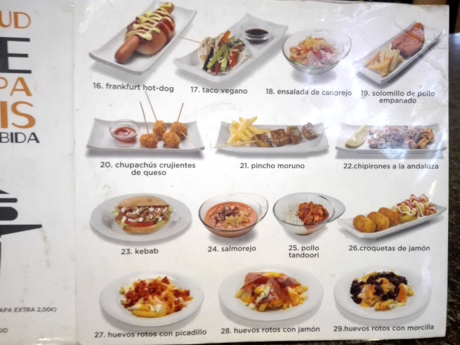 メニューのタパスは、さまざまな食べ物や飲み物が掲載された黒板に表示。