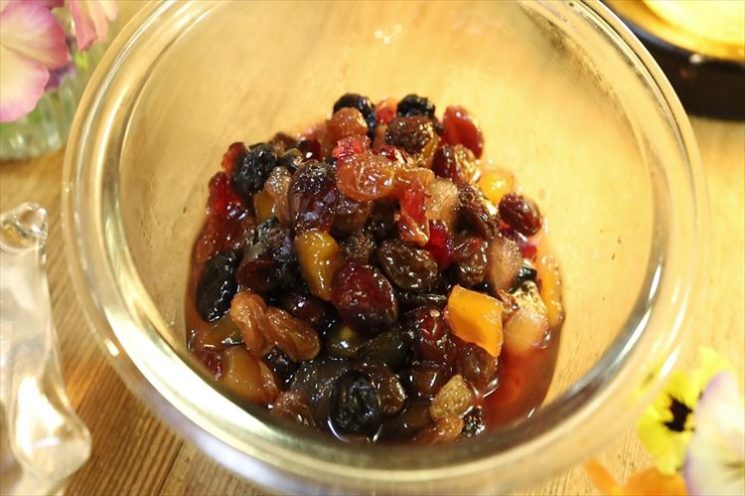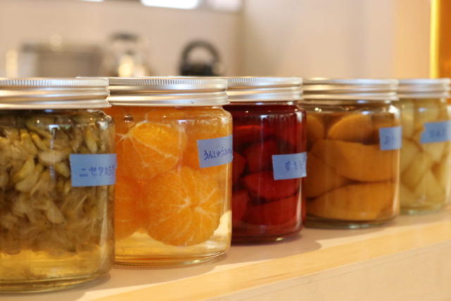 シロップ漬けの果物を食べています安曇野の古民家に暮らす。