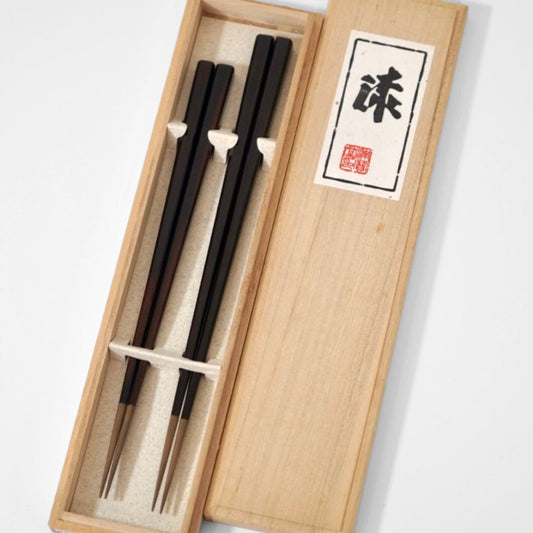 日本職人が丹精込めて造る伝統の高級箸 22.5cm 黒 天然木 漆塗装 輪島塗ならではの塗り肌の逸品 金蒔絵を施したモダンなデザイン 一双 宵待月若狭の箸職人が織りなす逸品 エンヴェールヘルックエンジュール。