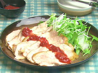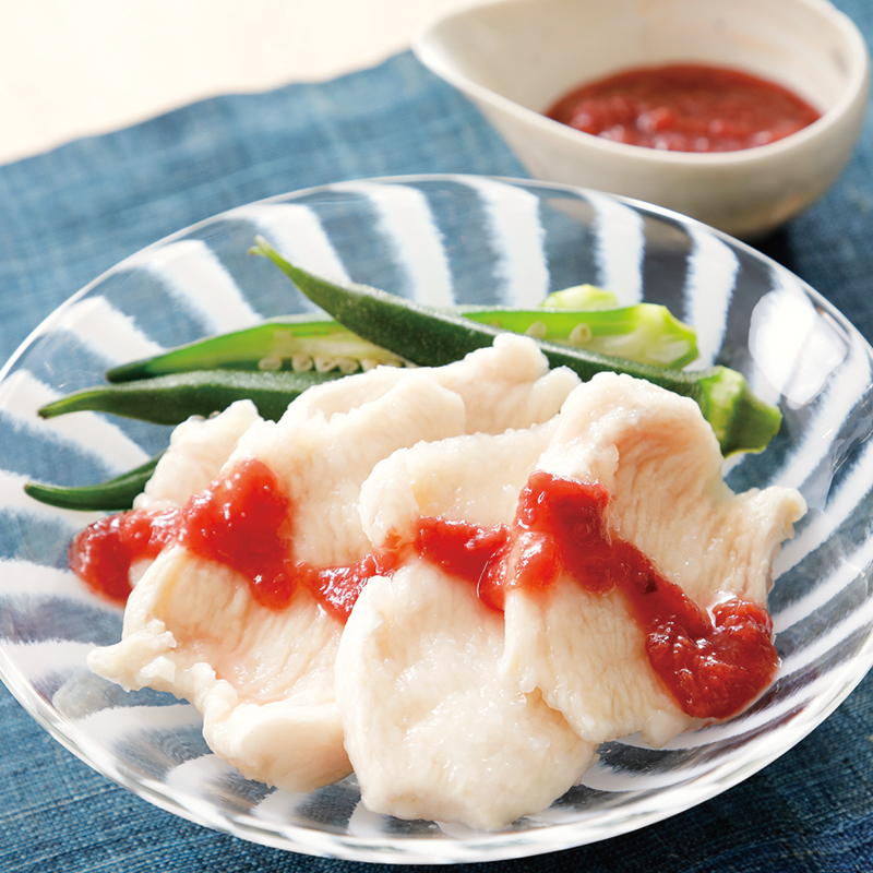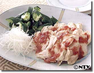 レンジでしっとり 蒸し鶏の梅ソース中田食品株式会社。