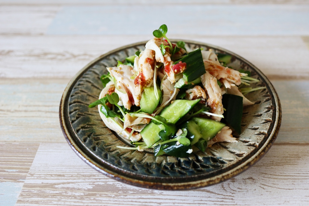 しっとり鶏むね肉とたたききゅうりの梅サラダOlive Oil Life オリーブオイルライフ。