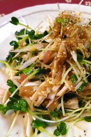 鶏むね肉の疲れすっきり梅昆布和え 材料 ・サラダチキン 75g ・かいわれ大根 4分の1パック ・梅干し 1個A・塩昆布 ひとつまみ 2g・白ごま 小さじ1 ・エクストラバージンオリーブオイル 小さじ2 作り方 ①サラダチキンをほぐしておく。 ②かいわれ大根は、半分に。