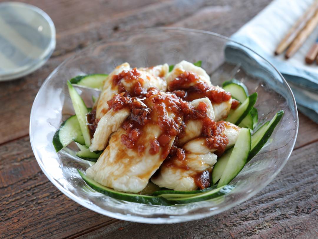 蒸し鶏とたたききゅうりの梅だれあえ』の人気レシピ レンチンでオレンジページ ニュースデイリーオレンジページnet。