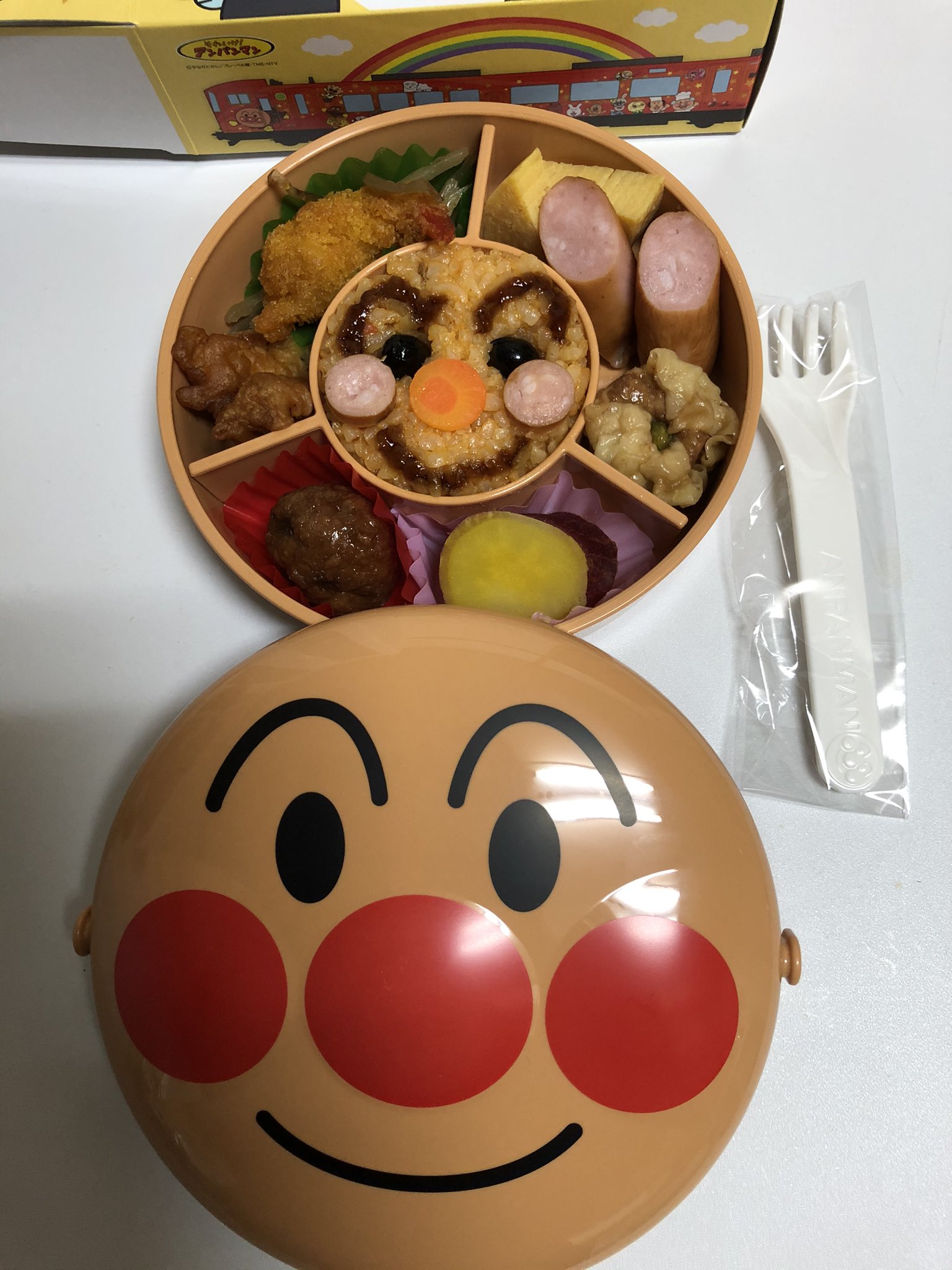 ナチュラル on X: " アンパンマン駅弁高松駅 アンパンマンの顔の容器に入った駅弁 娘はアンパンマンの目の黒豆や苦手なおかずが多くて完食ならず。でも、お弁当箱は今後使えるので助かる❤️ https:t.co c11k563dAn"X。