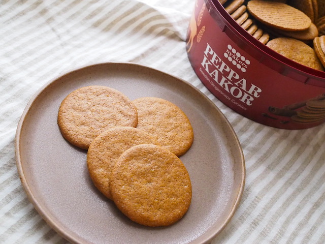 業務スーパー ジンジャークッキー、スウェーデンからの輸入菓子、シナモン、クローブなどの香辛料入り!栄養成分カロリー・原材料・値段も紹介。