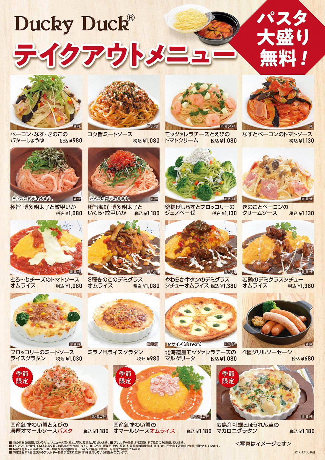 ダッキーダック 公式on X: "✨new🍱✨✨ テイクアウトメニューが新しくなりました‼️パスタやオムライス、ドリアなどなど種類豊富なテイクアウトメニューが今なら30%OFF👀❗️ お近くのダッキーダックに電話で予約すれば待たずに受け取る事も可能です🐥是非この機会。