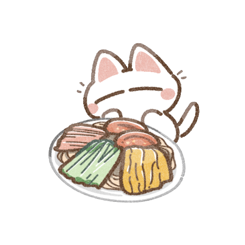冷やし中華無料イラスト&かわいいフリー素材集 ねこ画伯コハクちゃん。