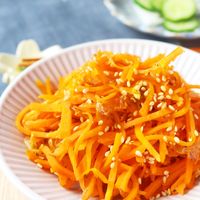 レンジで簡単!にんじんしりしりの作り方 卵なしツナ使用調味料2つ- YouTube。