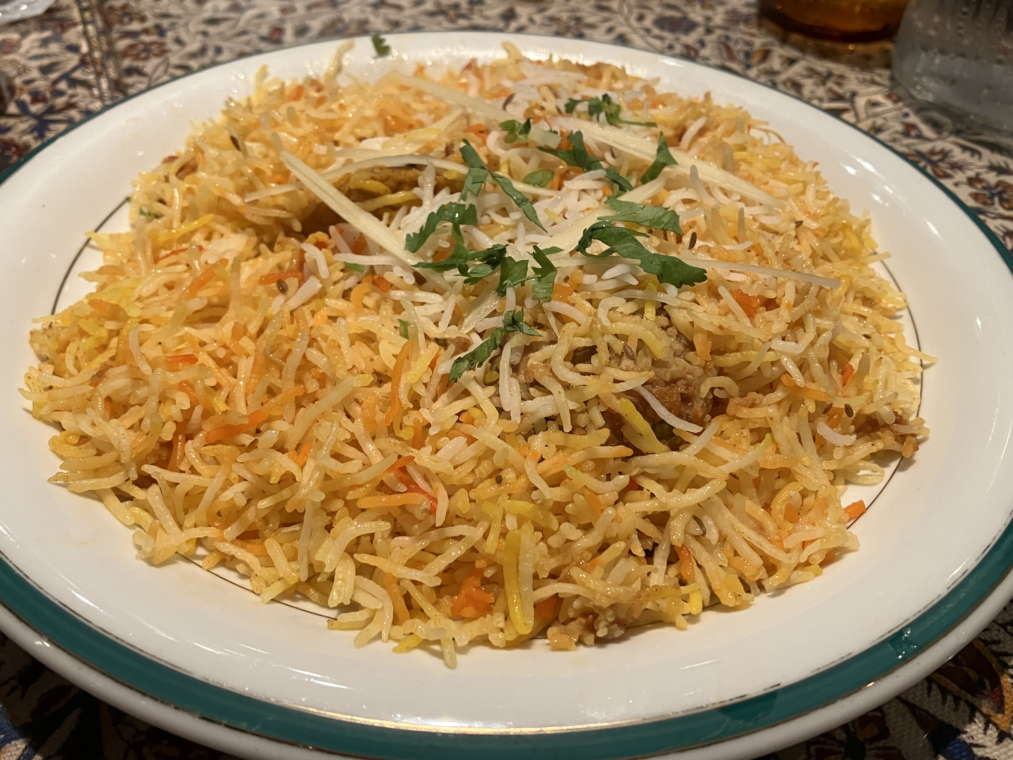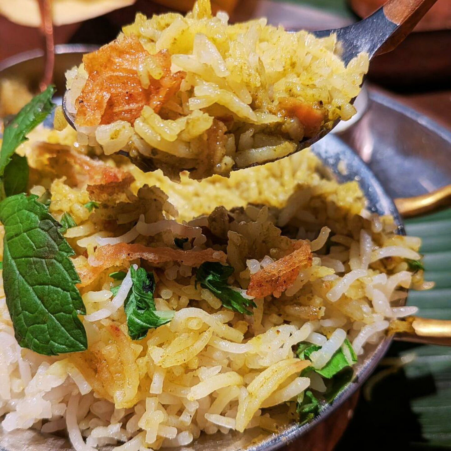 INDIA GATEのビリヤニには「INDIA GATEプレミアム」というバスマティライスを使用しています。 普通ビリヤニにはラルキラなどのプリッとした バスマティライスを選ぶことのほうが多いのですが、当店では敢えて柔らかめのバスマティライスを使用しています。 そのお米の甘味。