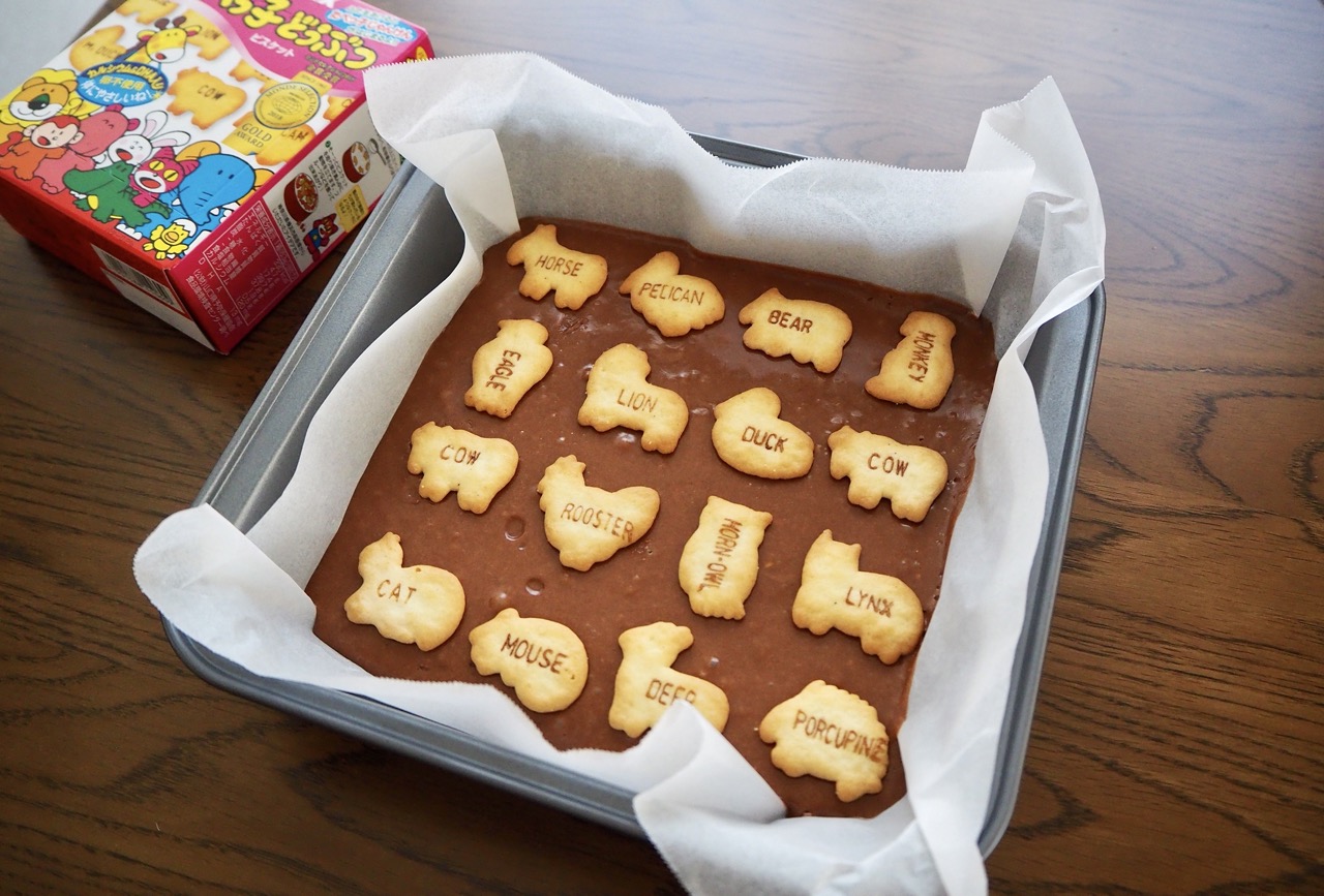 手作りバレンタインお菓子: たべっ子どうぶつブラウニー作り方。