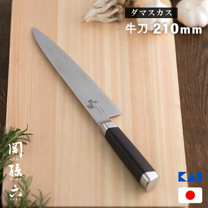 楽天市場 ランキング1位 牛刀 包丁 ダマスカス 210mm 貝印 関孫六 家庭用 日本製 国産 AE5205 両刃 刃渡り21cm ミルフィーユ国産 Made in Japan シェフズナイフ ミルフィーユ 調理器具 台所用品 プレゼント ギフト 左右兼用 : 堺の刃物屋さん こかじ。