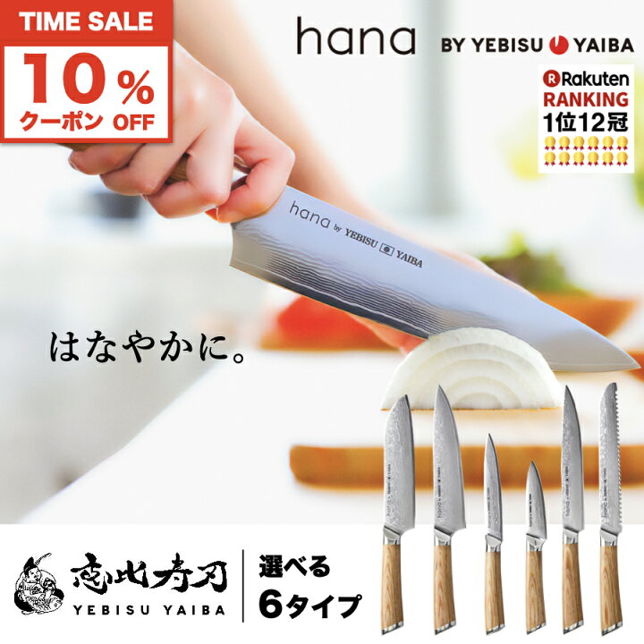 楽天市場 ☆10 14先着100枚☆全品10%offクーポン 楽天1位12冠 高評価☆4.7公式hana by YEBISUYAIBA ®おしゃれ で 切れる ダマスカス包丁 包丁 三徳包丁 三徳 牛刀 筋引 パン切り ペティナイフ 皮むきナイフ ダマスカス VG-10 ステンレスギフト送料無料。