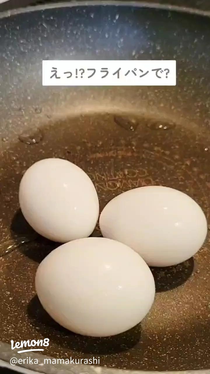 水は1cmでOK!「 フライパンで作る半熟ゆで卵」このレシピのポイントは↓の投稿文をチェックしてくださいね✨ .---------------------------------- ✍️このレシピのポイントは . ✔️フライパンで簡単&時短調理◎ ✔️ フライパンと蓋があれはOK! ✔️半熟の。