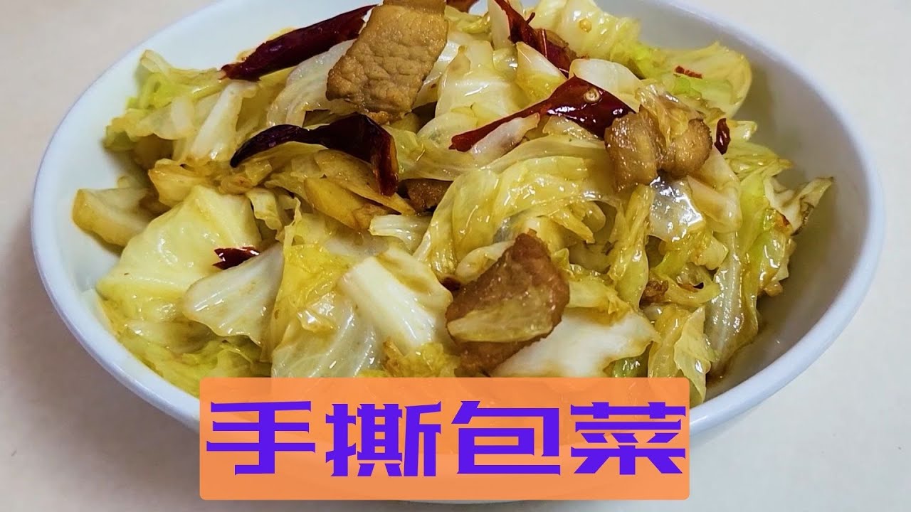 靠谱家常菜“手撕包菜”干香脆爽不出水、家常小灶做的不输大饭店! 美食强。
