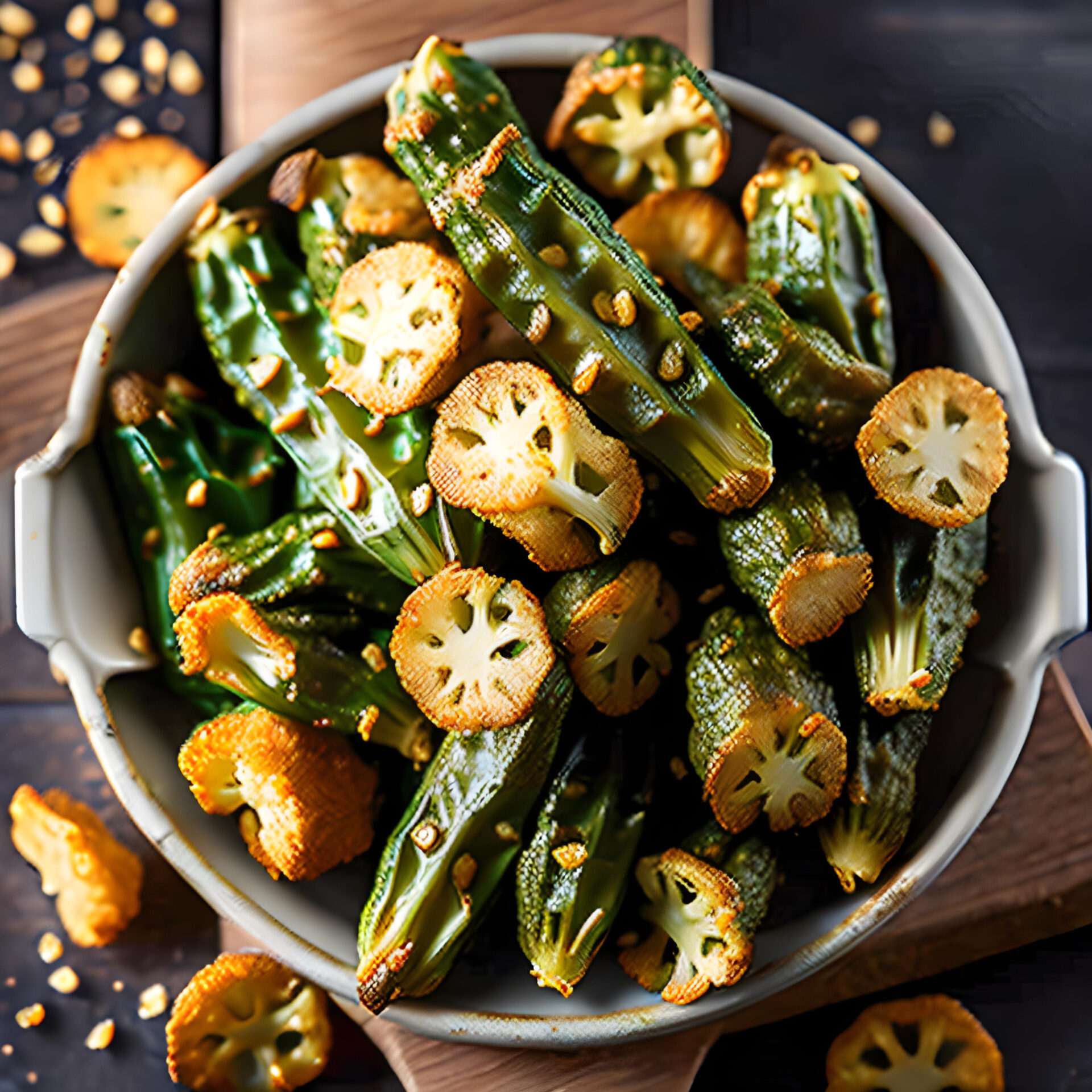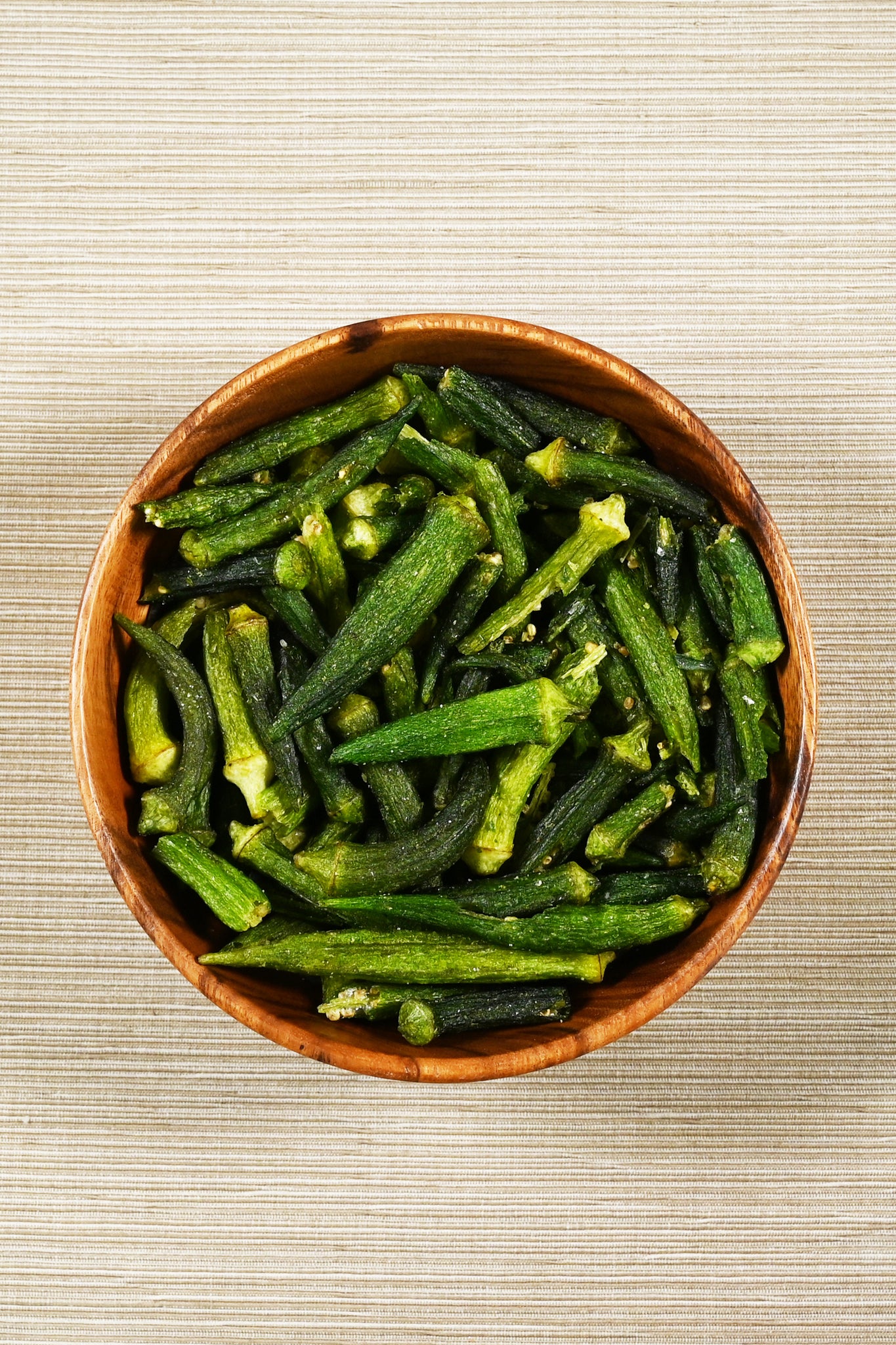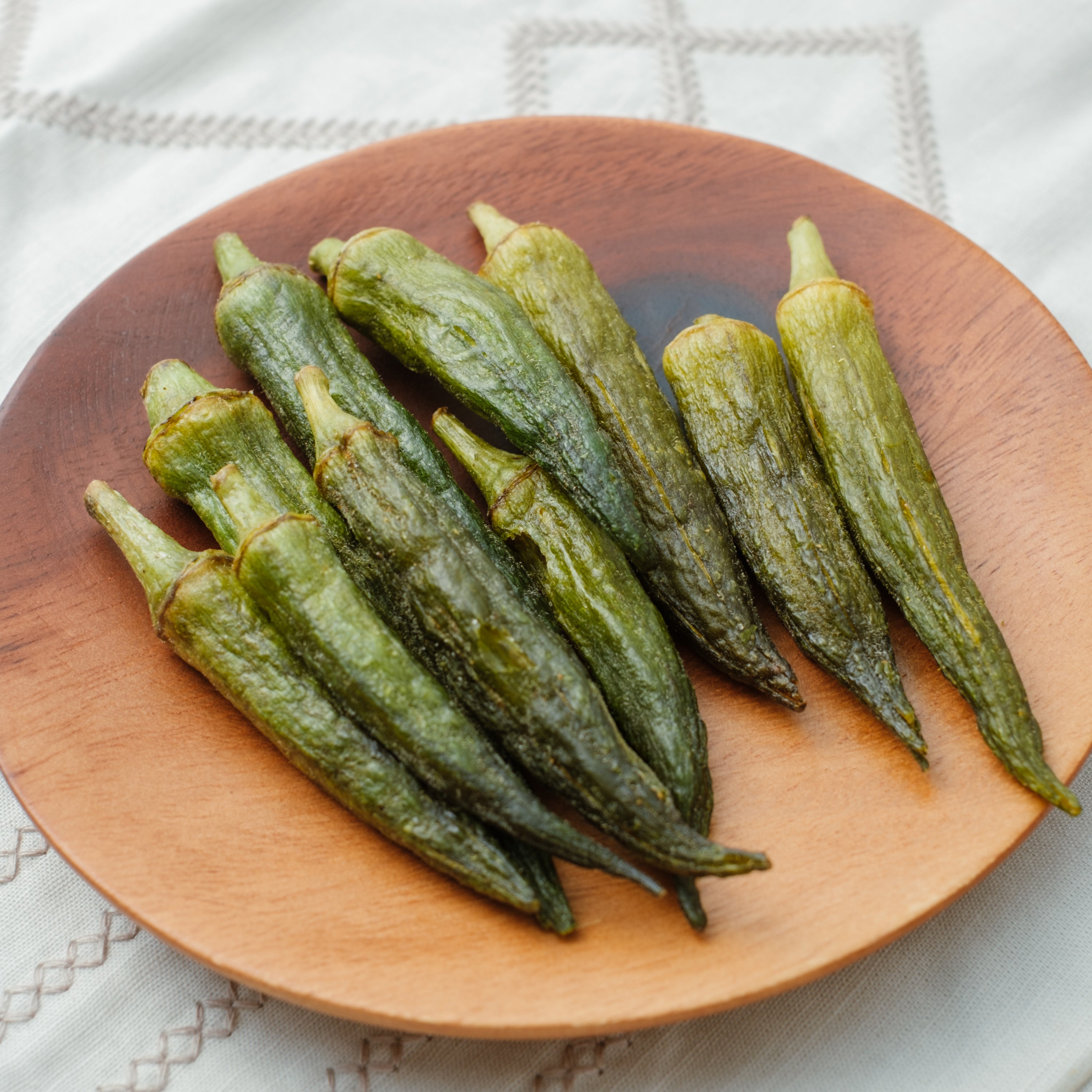 バキュームフライドオクラスナックVFドライオクラチップスVFドライオクラクリスピ。