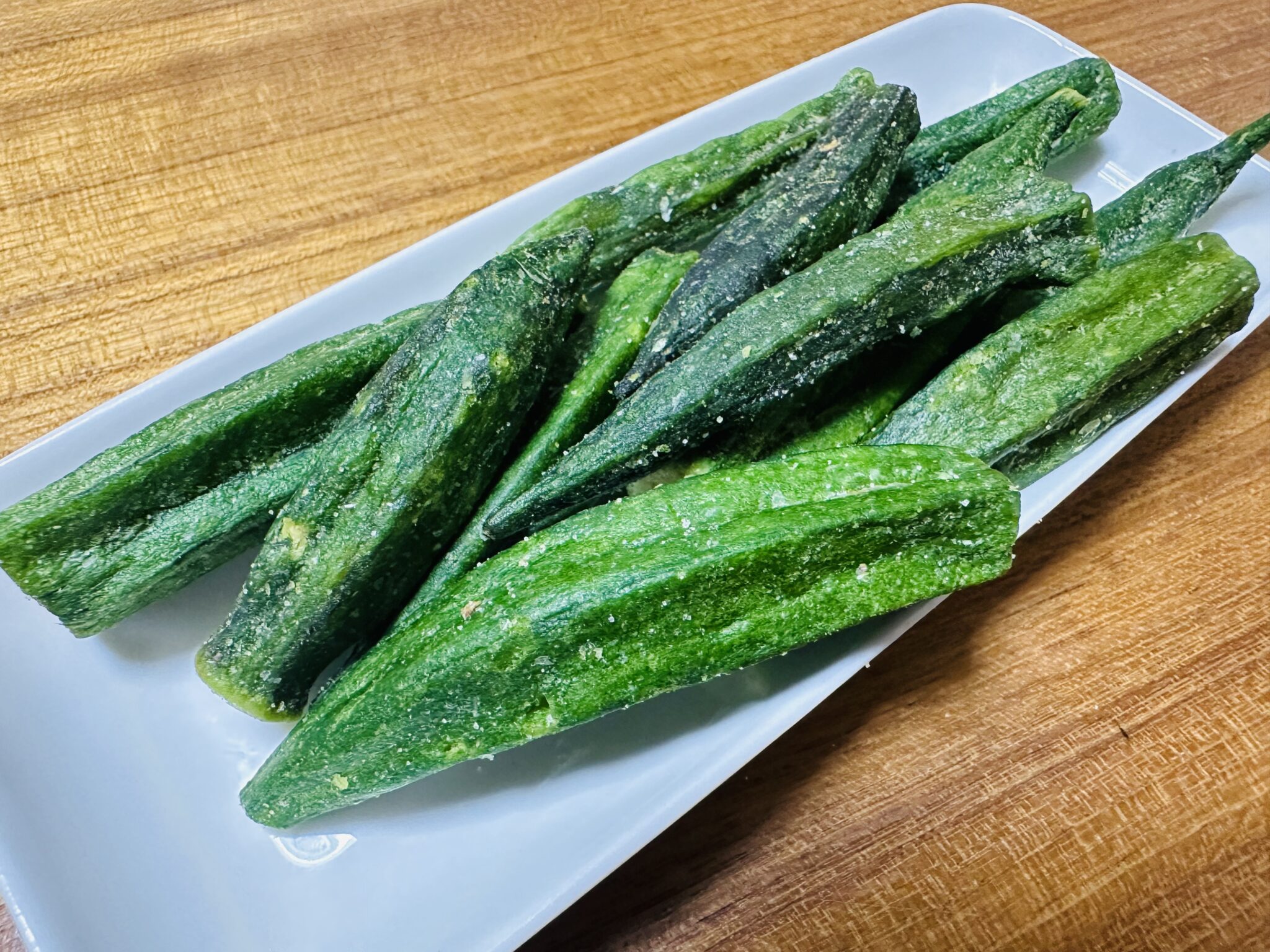 驚きのある野菜チップス!優しい塩味でカリッと食感!そのままオクラ! – シロクマかたばのお取り寄せと株主優待。