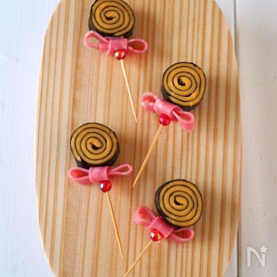お弁当おかず 一口サイズで食べやすい♪かわいいロリポップキャンディ風おかずの作り方 obento- YouTube。