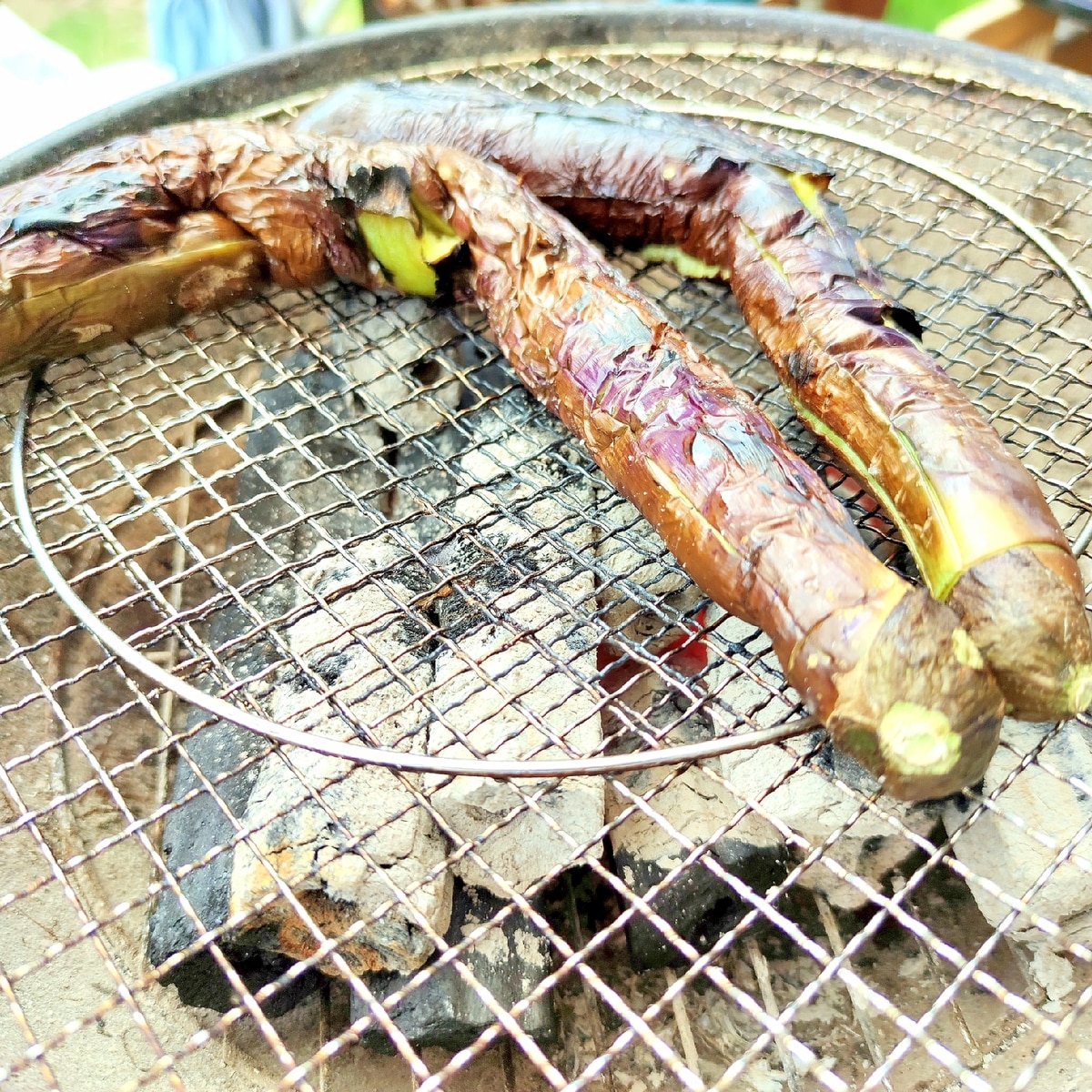 丸ごと、焼きなすのレシピ七輪で作る、エコなアウトドアレシピ。