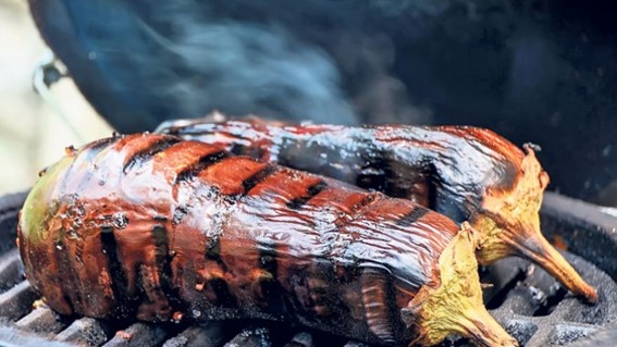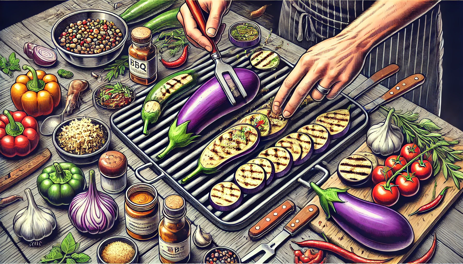 バーベキューのおいしい食べ物 - 焼きナスのニンニク添え - BBQ ニュース - ニュース。