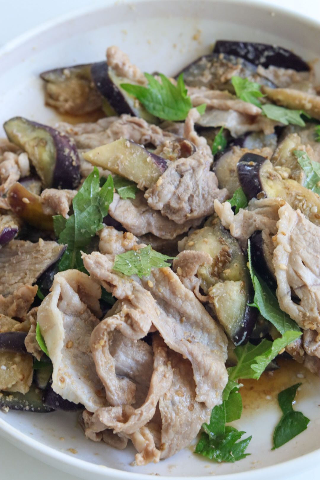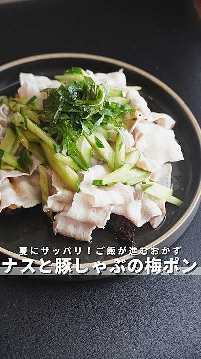 レンジで簡単☆豚しゃぶと蒸しなすの梅あえクラシル。
