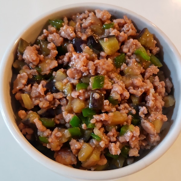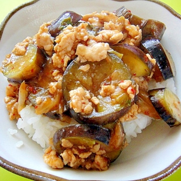なすとひき肉の甘辛丼 ご飯との相性抜群のやみつき丼♡。