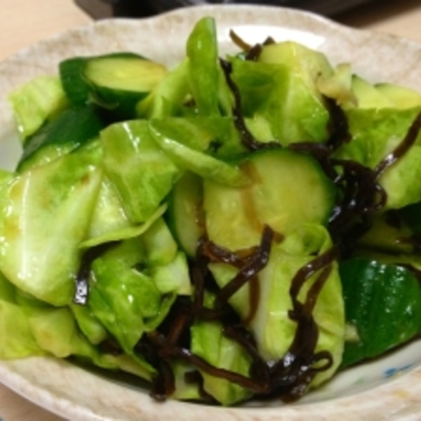 キャベツのパリパリ塩こんぶ和え 浅漬けですぐ食べれる♡。