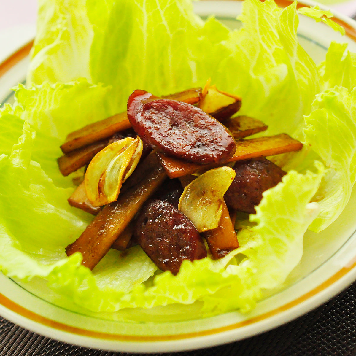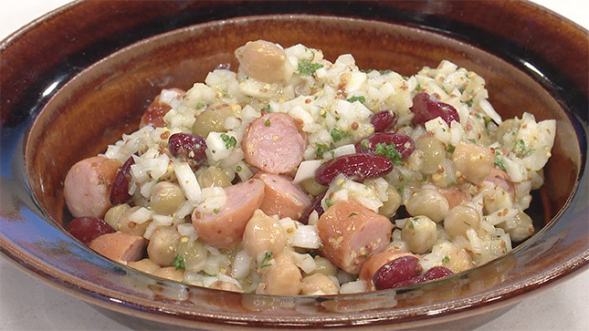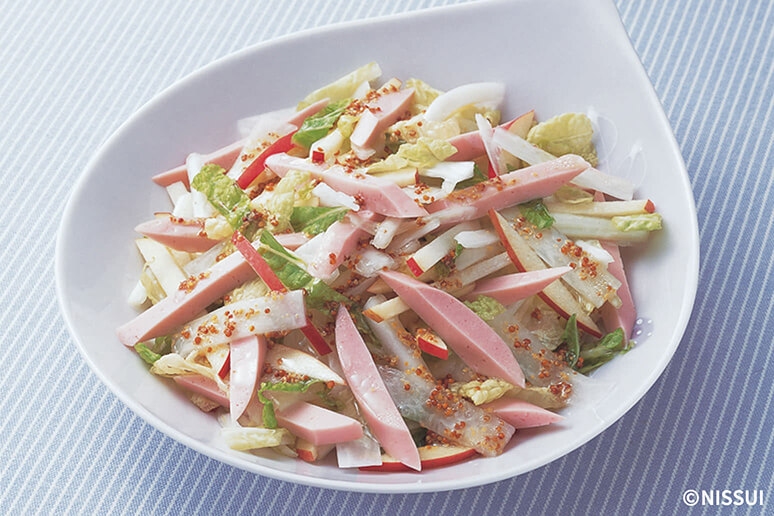 丸大食品レシピ切り干し大根とビアソーセージのサラダ。