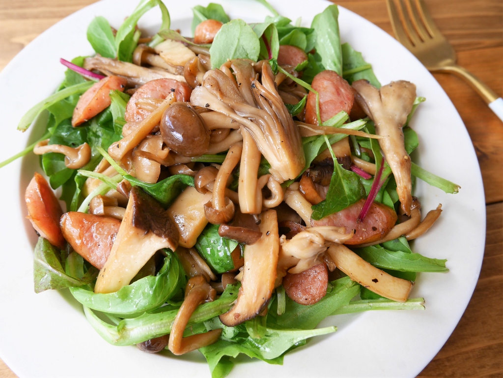 きのことソーセージのホットサラダOlive Oil Life オリーブオイルライフ。