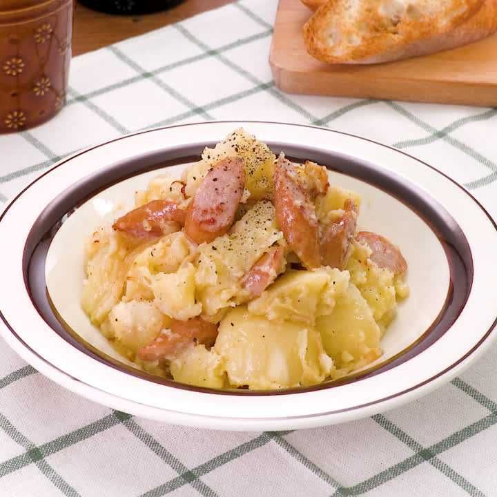 ポテトとソーセージの温サラダキユーピー3分クッキングCBCテレビ。